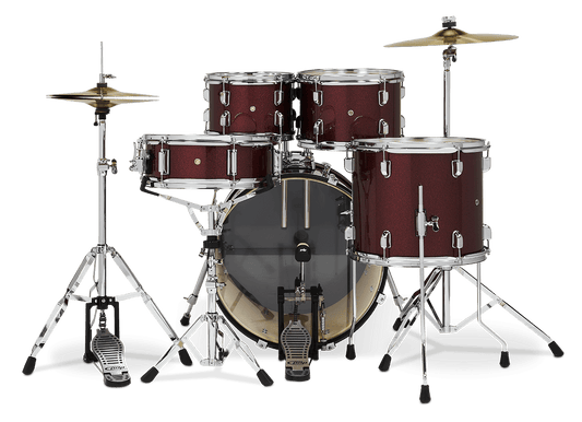 PDP PDCE2215KTRR Center Stage 5-piece Complete Drum Set with Cymbals - Ruby Red Sparkle