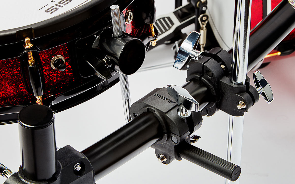 However, there is far more that makes the Strike Pro Special Edition an extraordinary playing experience than just the full-sized kick. To begin with, the Strike Pro Special Edition utilizes all-new latest-generation mesh heads, dual-zone for the snare and all the toms. Their response is faster, more natural and easier-playing than ever before. You will fly over these heads, effortlessly laying down powerful grooves and snapping off crisp fills. These heads wonβt fight you; instead, these new Alesis mesh heads are your best ally.