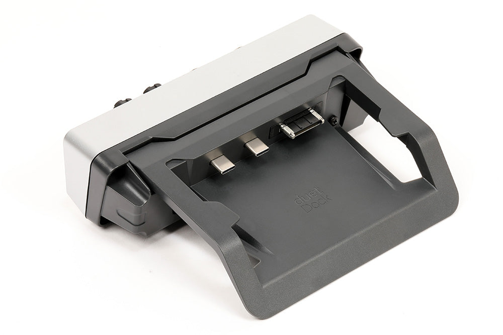 Duet set the standard for making music and recording on the go with its small footprint and flexible breakout cable. But when working in your studio, the best way to use Duet 3 is with the all-new Duet Dock*. The Dock positions Duet at the ideal angle for quick adjustments and meter and function visibility. The rear panel connectors on Duet Dock make it easier to organize and connect your cables to Duet too.
