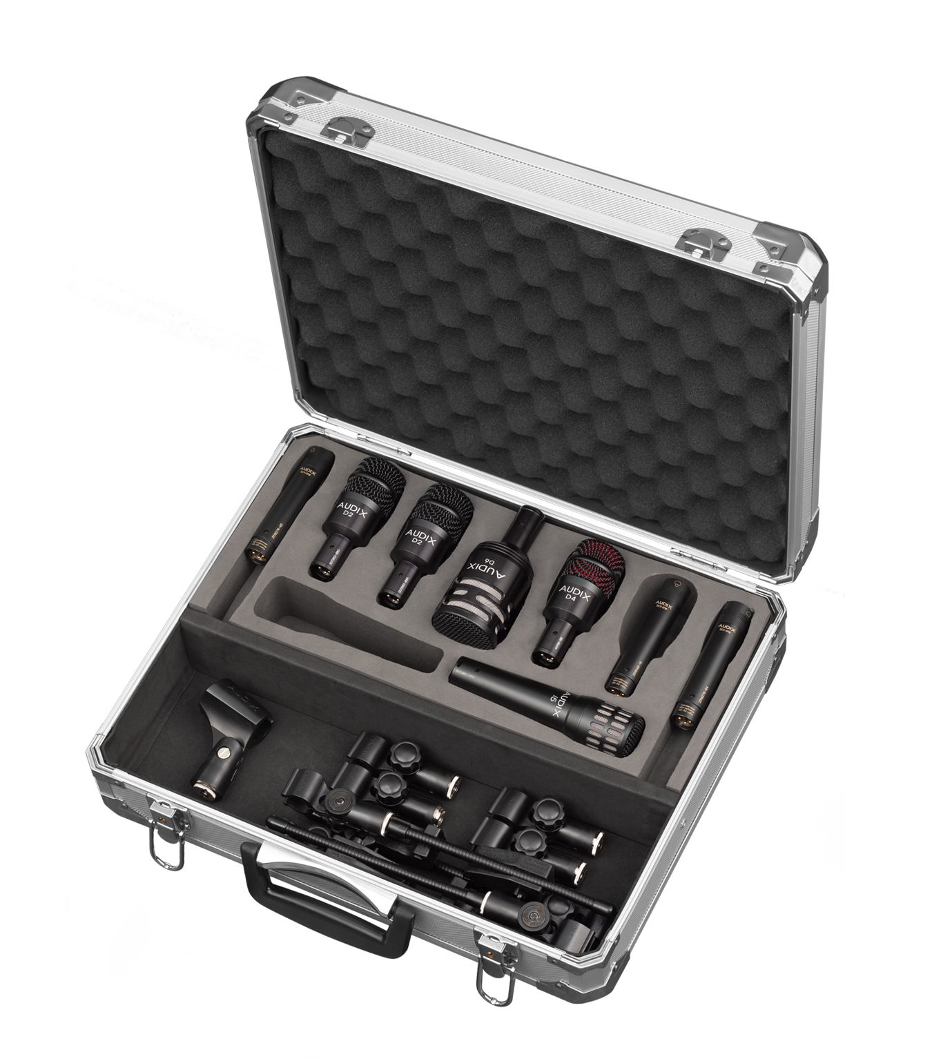 The DP8 professional drum pack is the ultimate combination of 8 microphones needed to mike up a 5 piece drum kit. All microphones perform equally well whether it be on a live stage or in the studio. Included in the DP8 drum microphone package is the D6, Audix’s flagship dynamic kick drum microphone, two D2’s for rack toms, one D4 dynamic microphone for floor tom, the i5 for snare, a pair of SCX1C’s for overhead miking, and the SCX1HC for hi-hat. Also included are four DVICE rim mount clips for the snare and tom microphones, and three heavy-duty tension fit microphone clips for the SCX1 microphones.