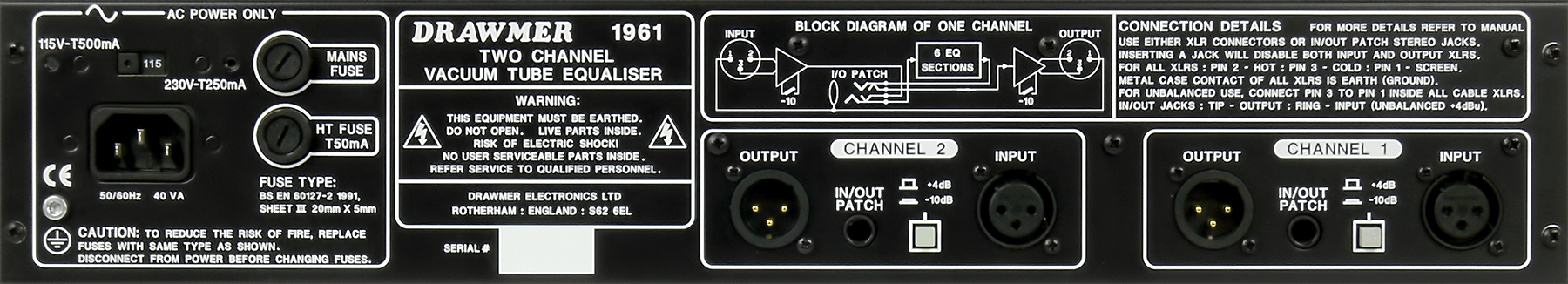 The 1961 is provided with balanced inputs and outputs on XLR connections.
