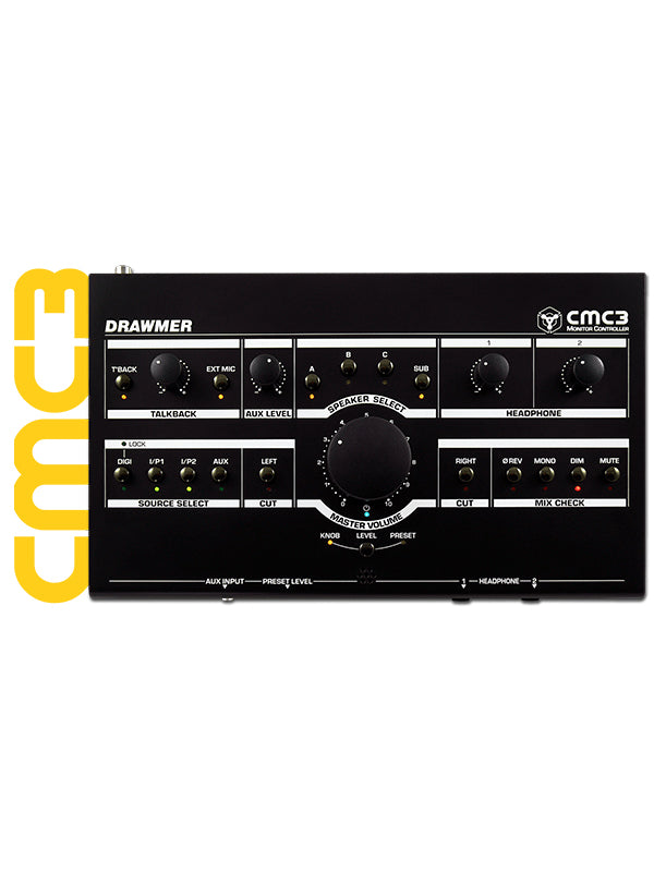 The CMC3 Compact Monitor Controller consolidates the feature sets of Drawmer's 3 most popular monitor controllers: Whilst retaining the famed accurate, and transparent audio quality of the MC2.1, it has the precision and control of the MC3.1 and the low profile, compact design of the CMC2. It is equally at home in a serious home studio as in a professional recording facility.