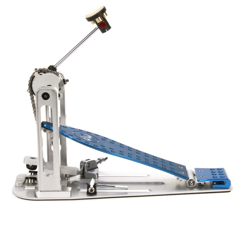 Chain-drive Single Bass Drum Pedal with Solid-aluminum Construction, Sprocket-less Cam with Gear Shift Adjustment, Tri-Pivot Swivel Toe-Clamp, and V.E.R.T. Vertical Sliding Spring Adjustment - Blue