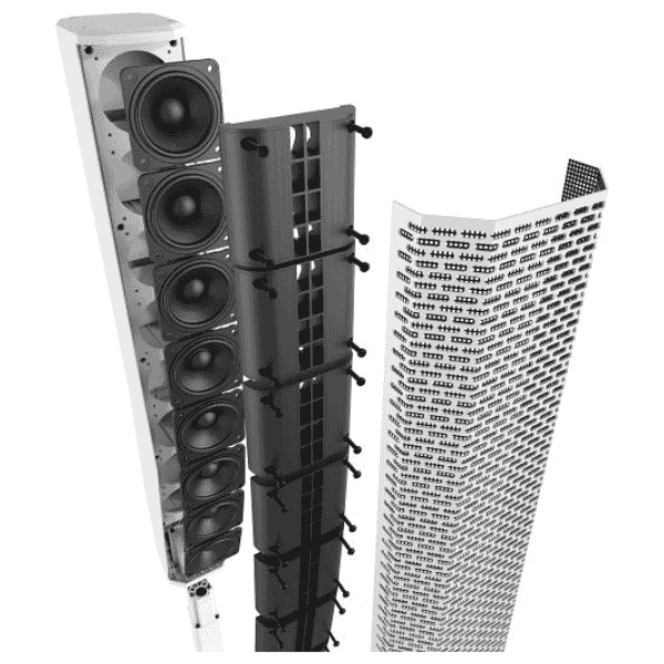 | Enclosure | Sub: 15 mm plywood Column: Composite Pole: Aluminum Grille: Steel with black or white powder coat |
