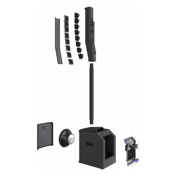 The system includes a speaker array, a two-piece pole connector, an array and pole backpack carry case, and a powered subwoofer – all made to pack up and assemble quickly, look great on stage, and withstand real-world wear and tear.All this makes it an outstanding choice for solo musicians/performers and smaller musical groups and venues – or any application that needs an easy-to-use, highly portable and lightweight system with extraordinary connectivity, control, coverage and output relative to its footprint.