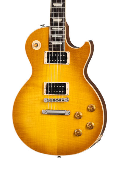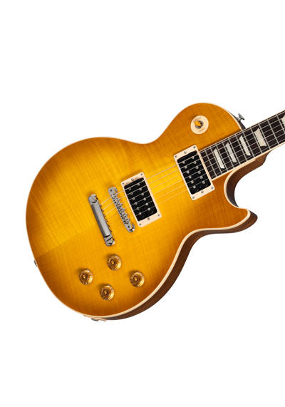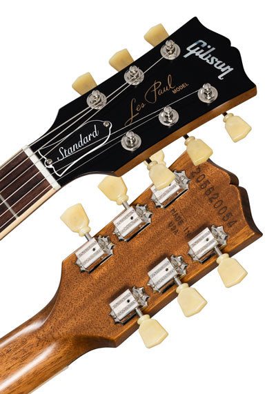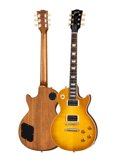 The new Les Paul™ Standard 50s Faded returns to the classic design that made it relevant, played, and loved -- shaping sound across generations and genres of music. It pays tribute to Gibson's Golden Era of innovation and brings authenticity back to life. The Les Paul Standard 50s features a satin nitrocellulose lacquer finish that gives it the look and feel of a long-treasured musical companion. It has a solid mahogany body with an AA figured maple top and a rounded 50s-style mahogany neck with a rosewood fingerboard and trapezoid inlays. It's equipped with an ABR-1 Tune-O-Matic bridge, an aluminum Stop Bar tailpiece, Vintage Deluxe tuners with Keystone buttons, and gold Top Hat knobs with dial pointers. The open-coil Burstbucker™ 1 (neck) and Burstbucker 2 (bridge) pickups are hand-wired to audio taper potentiometers and Orange Drop® capacitors.
