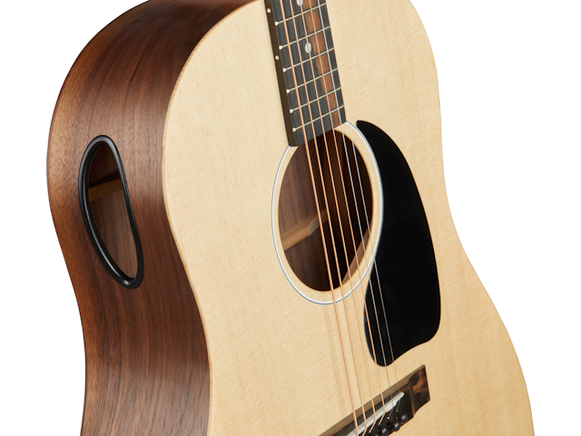 The G-45 is part of the Generation™ Collection. Like all models in this collection, it is made in Bozeman, MT, by the same highly skilled craftspeople who make all Gibson acoustics. It features a solid Sitka spruce top and solid walnut back and sides for tone that sounds crisp and resonant. You'll find that the slightly thinner round shoulder body is exceptionally comfortable to hold and play. The TUSQ® nut and saddle, along with the Grover® Mini Rotomatic® tuners deliver solid tuning stability so you can spend more time playing instead of tuning, and the utile neck with its easy-playing Advanced Response neck profile is so comfortable you won't want to put it down. A gig bag is also included.