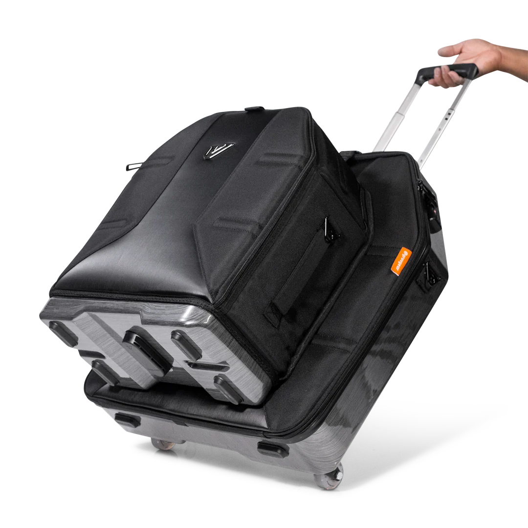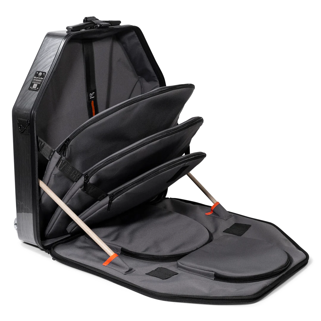 Hauling an entire drum kit in one trip is now a reality with the new VELOC transport system. The complete travel-ready hybrid bags come in the most common snare, kick and tom sizes, plus double pedal, cymbals, sticks and hardware - All connecting to the ingenious magnetic-mount rail cart for one epic load-out!