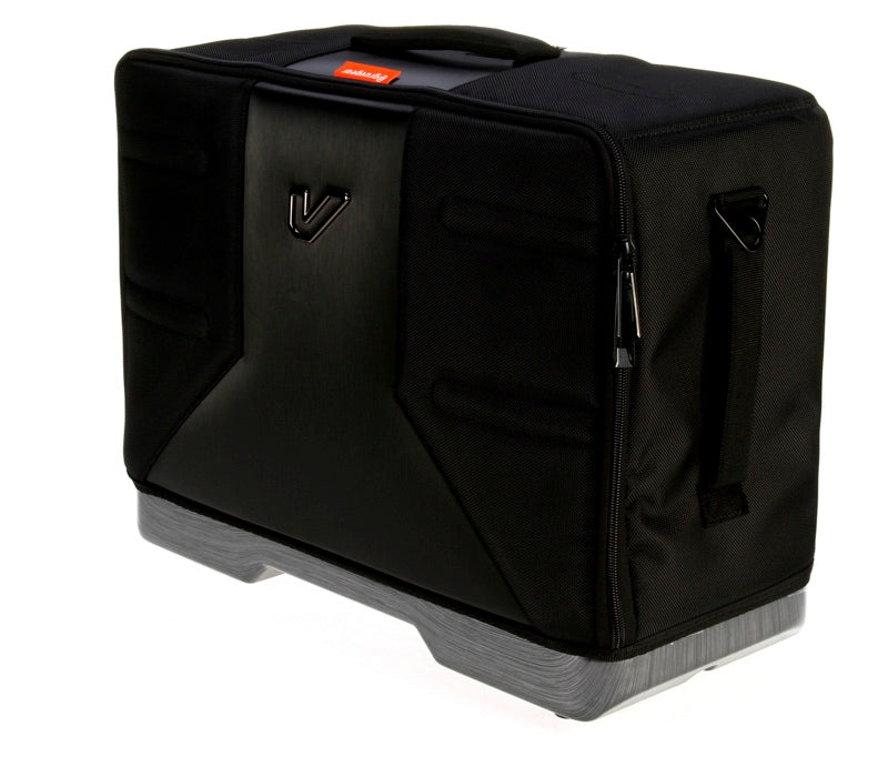 Get your drum pedals to the stage in one haul with the Gruv Gear VELOC double bass drum pedal bag. This water-resistant 1,680-denier polyester bag features an ABS/polycarbonate shell that ensures your pedals stay free of the dings and dents of getting to the stage. An internal divider keeps your pedals separate during transport. Adjustable cushioned neoprene straps and rugged padded handles make attaching this bag to the magnetic VELOC cart (sold separately) quick and easy. Drummers here at Jubal Store love VELOC bags and the entire VELOC system.