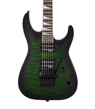 Sporting classic Jackson style, the JS32Q DKA is wrapped in Dark Sunburst, Transparent Black, Transparent Blue, Transparent Green Burst or Transparent Purple Burst finishes with our signature pointy black headstock and all-black hardware, including the standard strap buttons and sealed die-cast tuners.