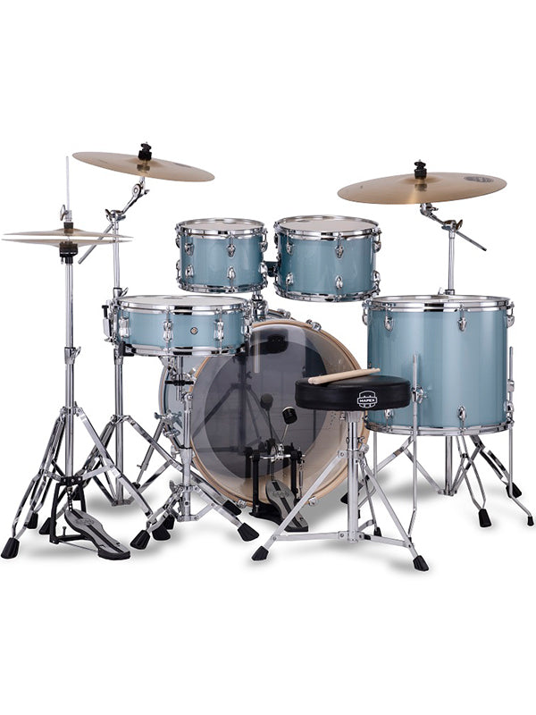 The Venus Series presents an all-inclusive setup for the first-time player ready to start the "Drummer for Life" adventure. The 100% poplar shells appointed with Mapex SONIClearâ„¢ bearing edges produce rich tones from the toms, a robust crack from the snare drum and a punchy low thump from the bass drum.