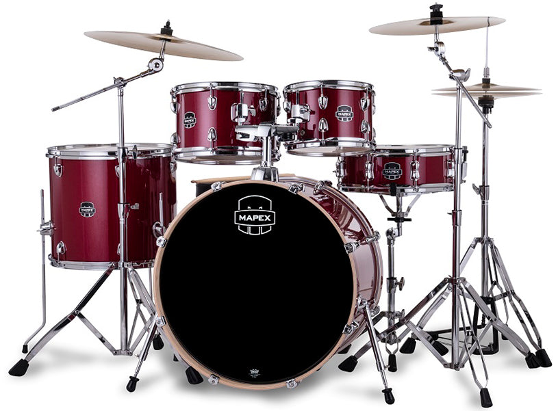 The Venus Series presents an all-inclusive setup for the first-time player ready to start the "Drummer for Life" adventure. The 100% poplar shells appointed with Mapex SONIClearâ„¢ bearing edges produce rich tones from the toms, a robust crack from the snare drum and a punchy low thump from the bass drum.
