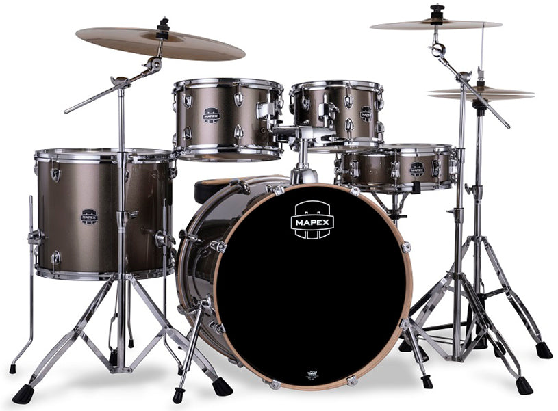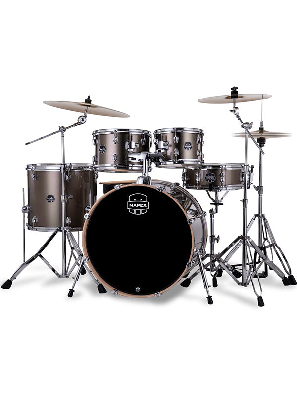 The Venus Series presents an all-inclusive setup for the first-time player ready to start the "Drummer for Life" adventure. The 100% poplar shells appointed with Mapex SONIClearâ„¢ bearing edges produce rich tones from the toms, a robust crack from the snare drum and a punchy low thump from the bass drum.