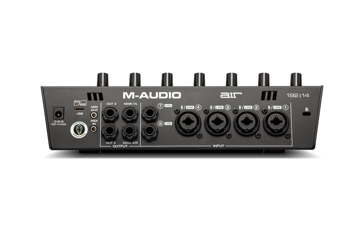 The M-Audio AIR 192|14 is an 8-in 4-out feature-packed USB audio/MIDI interface that provides all of the connections and software you need to easily create professional 24-bit/192kHz studio-quality recordings. The AIR 192|14 features (4) XLR+¼” TRS combo inputs, (2) ¼” line inputs and (2) ¼” instrument inputs that have a specially designed gain and impedance stage to provide the most accurate representation of your guitar or bass when plugged directly into the interface. There is also MIDI input and output connections so you can connect any external midi gear that you may have such as external sequencers, drum machines and controllers.