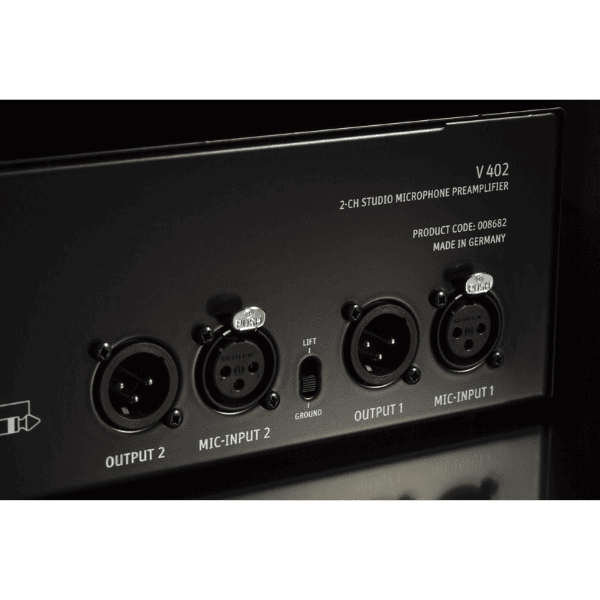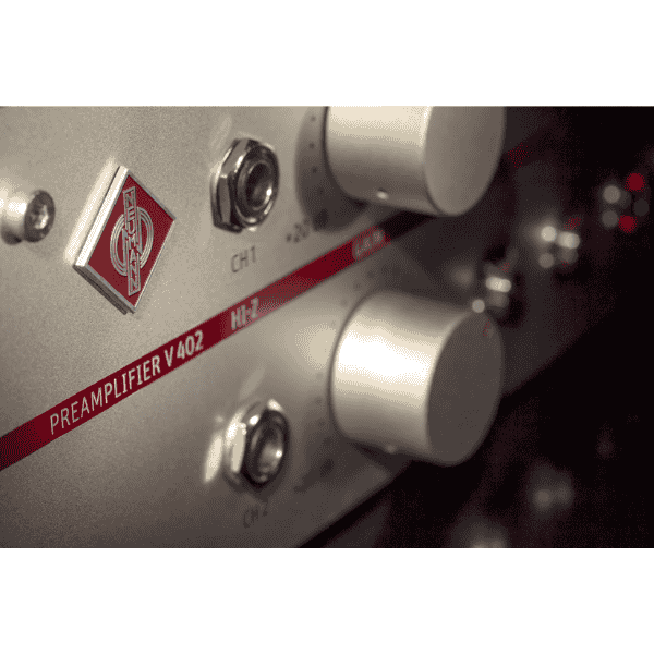 The V 402 is a state-of-the art dual channel microphone preamplifier with an integrated studio grade headphone amplifier. Its transformerless circuitry is designed for maximum transparency and sonic purity. The V 402 is thus the perfect complement to all Neumann microphones in order to unveil the true character of voices and instruments.