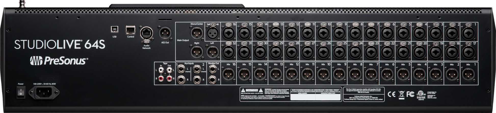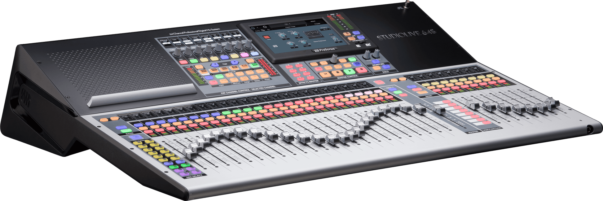 64-channel Digital Mixer with 32 Microphone Preamps, 33 Motorized Faders, 64-in/64-out USB Audio Interface, AVB Networking, FLEX DSP Engine, SD Card Recorder, DAW Control, and Software Suite
