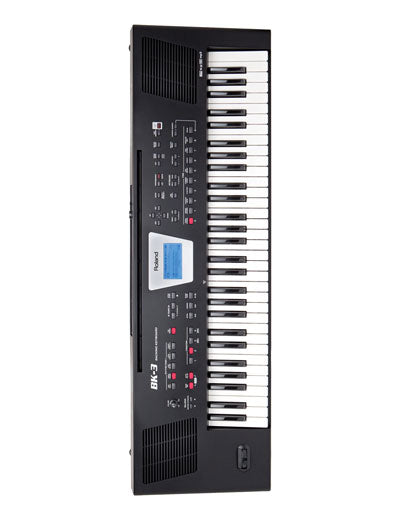 The BK-3 can play a variety of external backing formats from optional USB memory, including WAV and MP3 audio, SMF, and Roland rhythms (BK, E, G, and VA series). Playback tempo and song key can easily be adjusted to suit your vocal range or performing needs, even with audio files. In addition, a Center Cancel function reduces the volume of vocals in commercial WAV/MP3 songs, ideal for karaoke singing and minus-one playing.