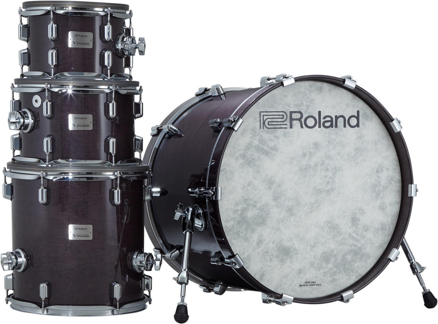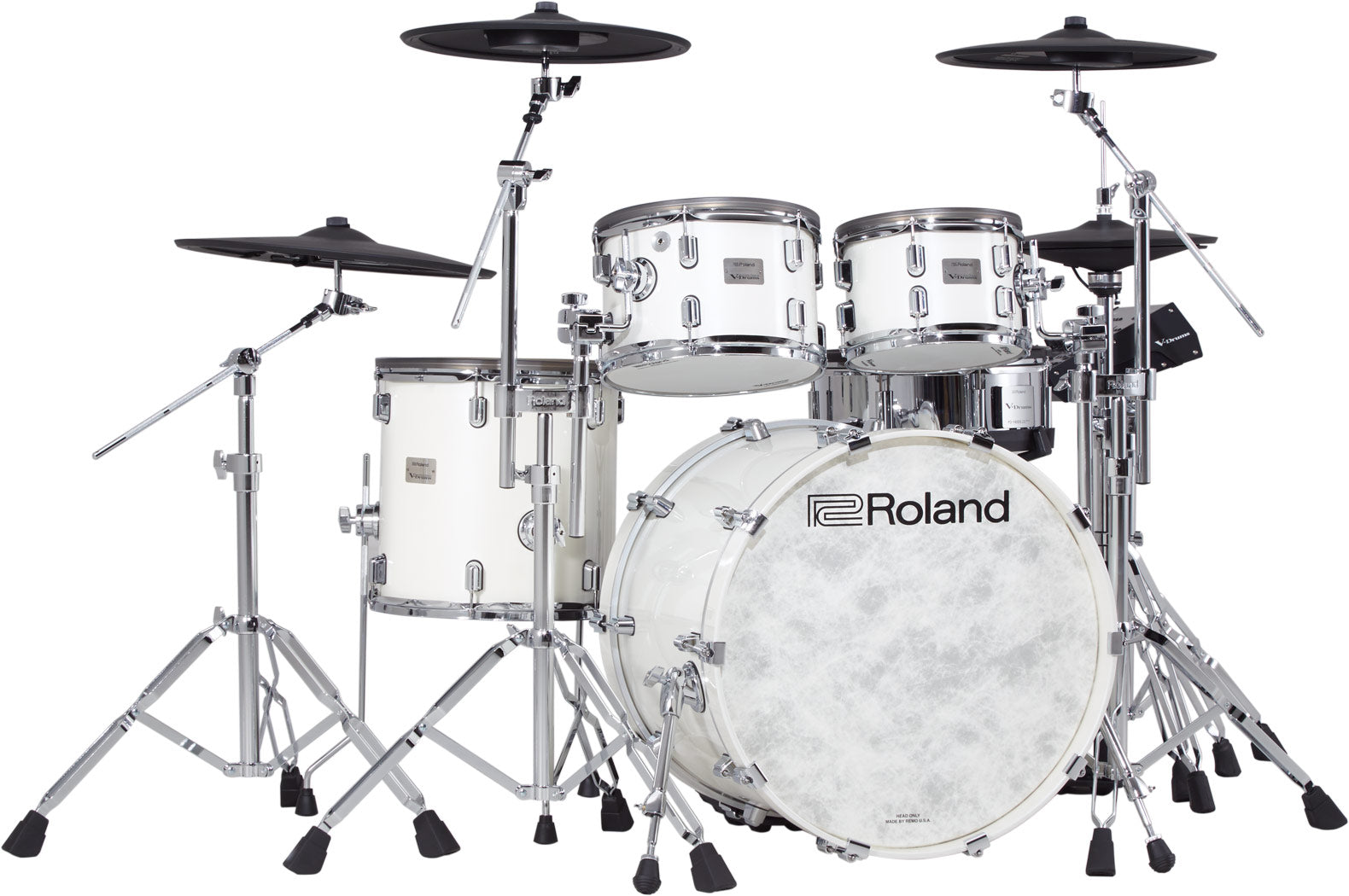- Five-piece V-Drums Acoustic Design kit with full-size wood shells and double-braced chrome stands