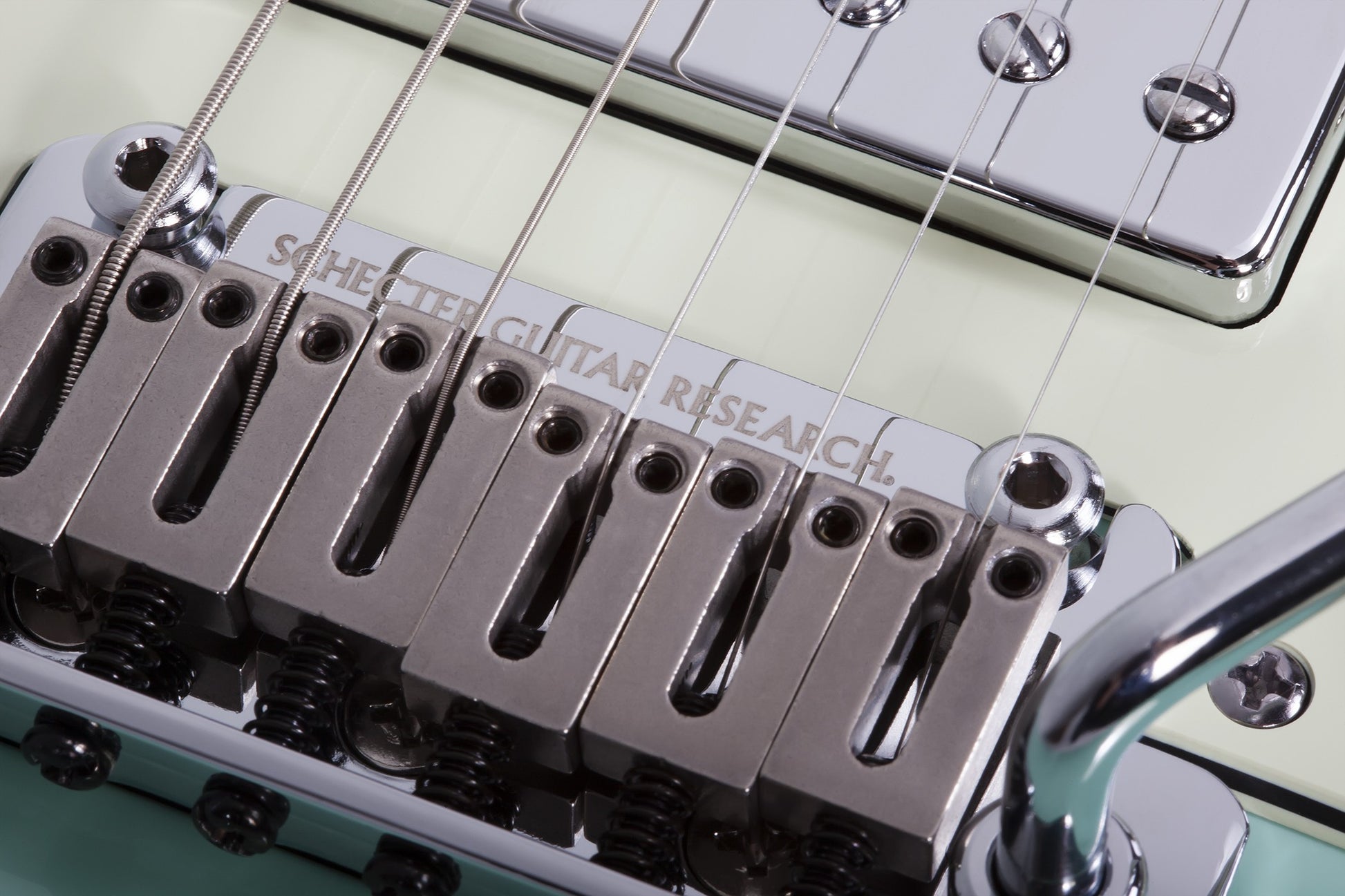 Bridge: Schecter Nouveau tremolo system Music City Bridge Three String Tree string retainer