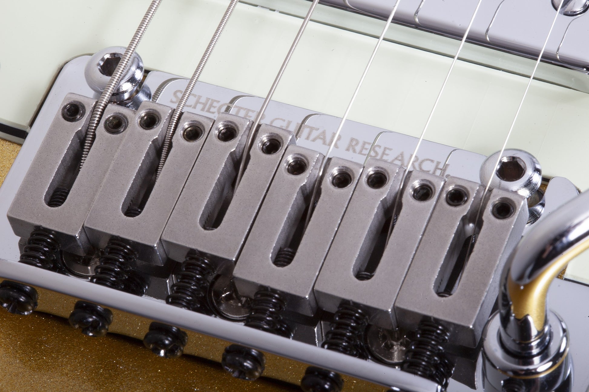 Bridge: Schecter Nouveau tremolo system Music City Bridge Three String Tree string retainer