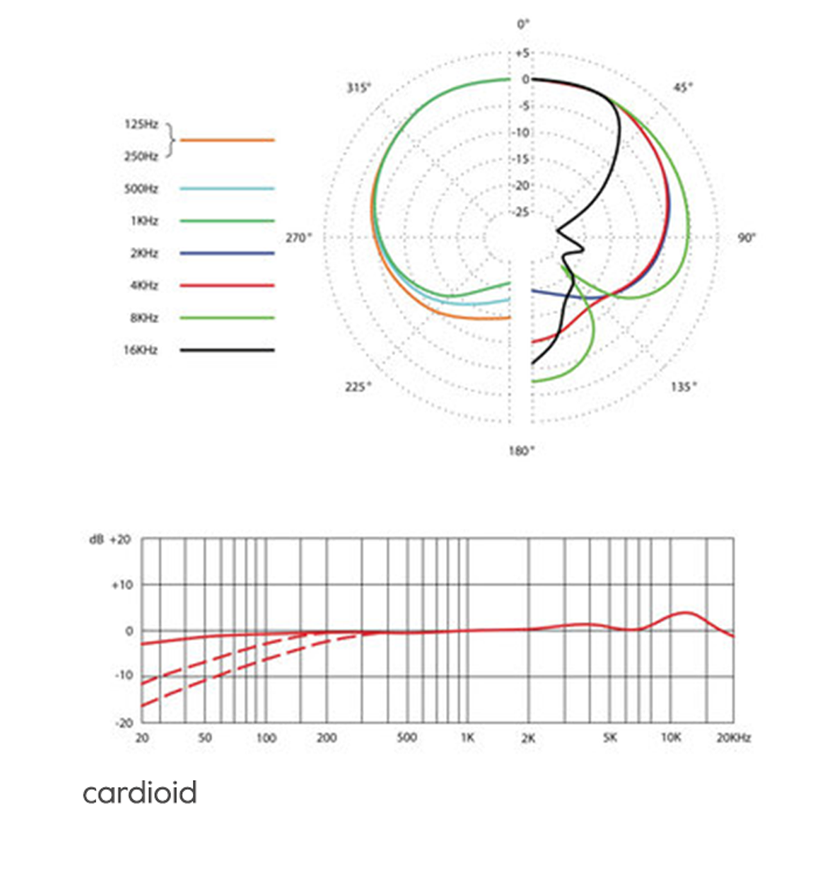 Cardioid, omnidirectional and bi-cardioid selectable polar patterns