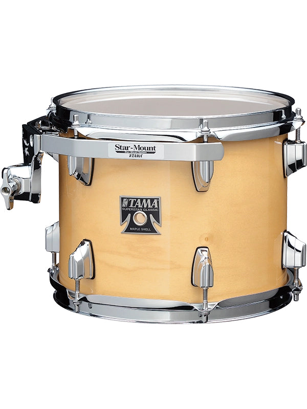 For more than forty years, the Superstar name has stood for groundbreaking design, superior build quality, sterling tone, and clear projection. Superstar Classic once again upholds tradition by raising the bar for discerning drummers—and remarkably—does it at an extremely competitive price. Drawing on Superstar of the past, its classic TAMA T-shape badge and streamlined low-mass single lugs point to the simpler state of art of the 70's, while the ingenious Star-Mount system and new thinner gauge 100% maple shells eclipse anything in its class. Visually ravishing, the Gloss Lacebark Pine exterior ply possesses a complex wood grain pattern to give this kit an extraordinary visual appearance.